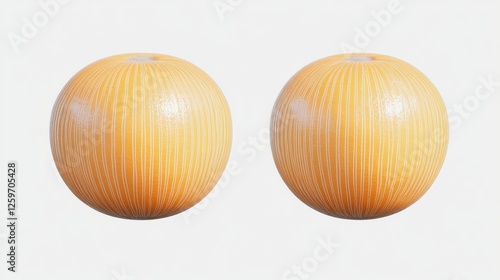 Two Geometric Spheres with Yellow Wood Texture on a Soft White Background