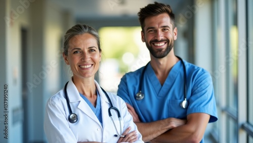 Two Healthcare Workers Smiling In Hospital