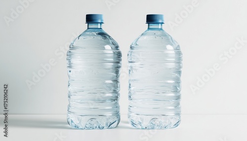 Two Large Bottles Of Water Resting On A White Surface: Hydrating Essentials For Staying Refreshed And Quenched Throughout The Day.