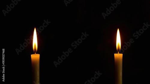 Two lit candles against a dark background, creating a warm and peaceful atmosphere.