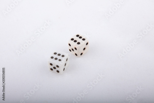 Two old white dice. Isolated on white background.