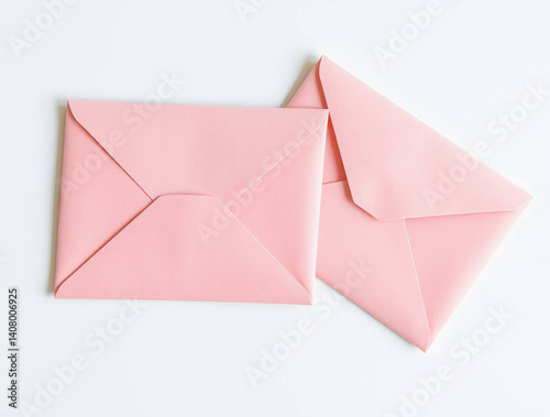 two pink envelopes on a plain white background. The envelope on the left is open, displaying its triangular flap, while the one on the right is closed, showing a neat, pointed flap (1)
