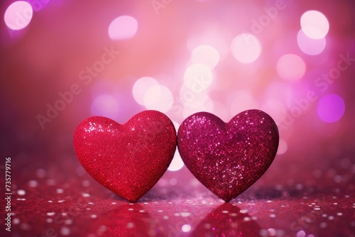 Two red hearts are placed side by side on a table, creating a simple yet striking image.