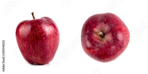 Two red ripe apples, perfect isolate on a white background, harvesting design.