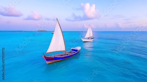 Two Sailboats Drifting on a Tranquil Ocean