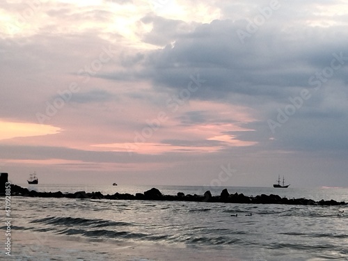 Two ships in the sunset