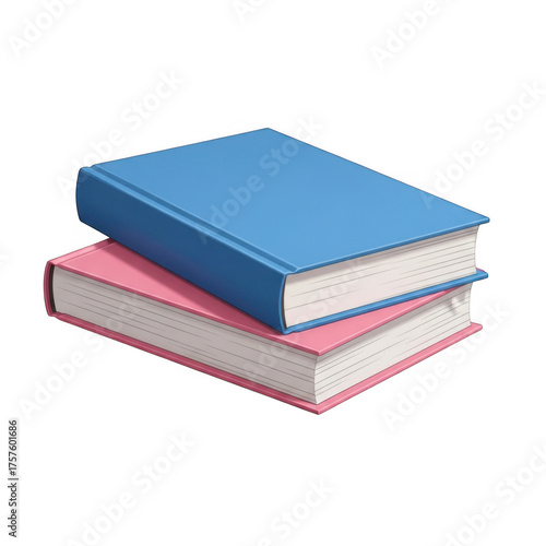 Two stacked hardcover books with blue and pink covers isolated on transparent background