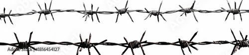 Two strands of barbed wire on white background metal and rusty old wires security fence border concept close up shot