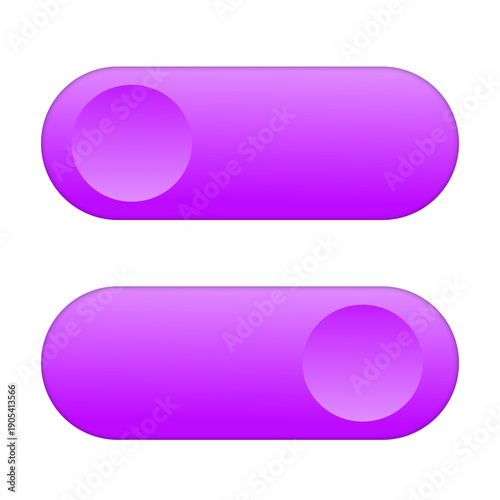 two ui toggle or button shapes, each a rectangular capsule with rounded edges, in a modern and soft 3d purple gradient