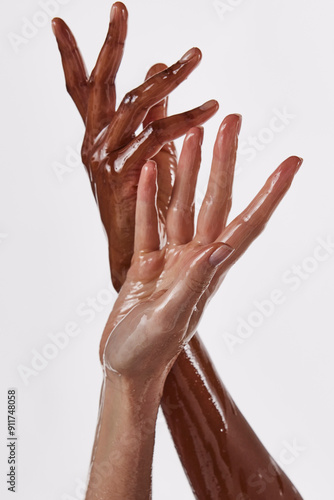Two wet hands touching