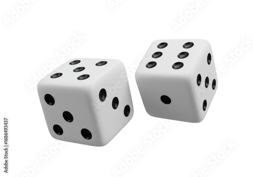 Two white dice showing numbers isolated on transparent background