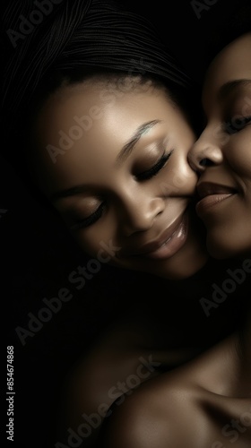 Two women are hugging each other with their faces showing. Scene is warm and affectionate