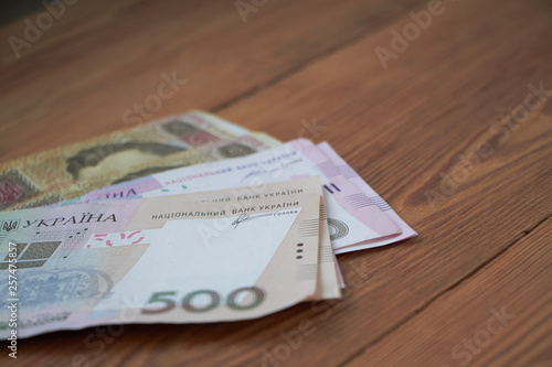 Ukrainian national currency, bills of different values, the calculation between people, the transfer of money.