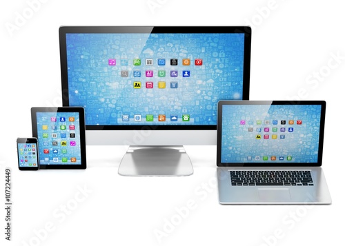 Ultimate web design, laptop, smartphone, tablet, computer, display. 3d rendering.