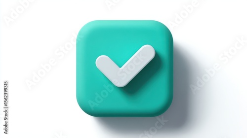 Ultra quality image of 3D teal check icon with shadow effects, vector design for mobile or desktop UI confirmation.