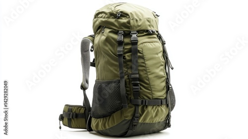 Ultra-lightweight hiking backpack with side mesh pockets and comfortable straps, isolate on white background