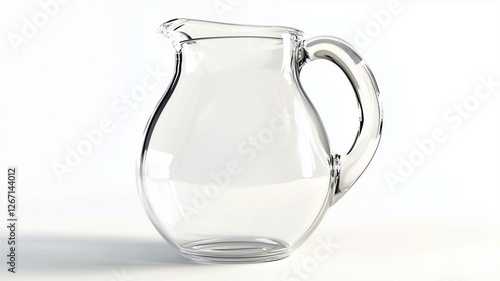 Ultra-realistic image of a clear glass pitcher with a handle, isolated on a white background