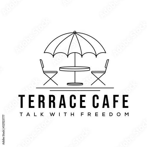 umbrella chair table line art logo vector minimalist illustration design, cafe logo design