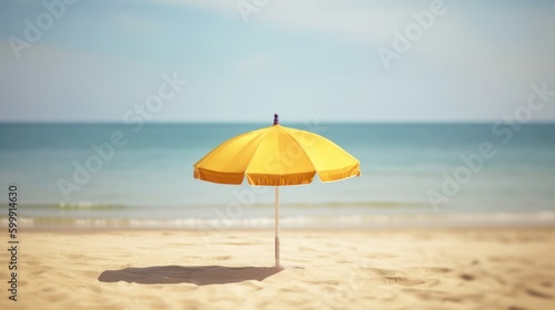 umbrella in the sand on the beach in summer, generative ai