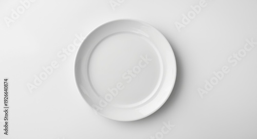 unadorned white plate placed on a white smooth matte background with copy space