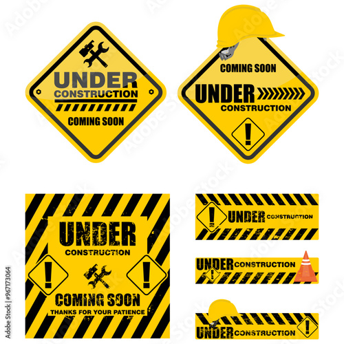 Under Construction, board and sign vector