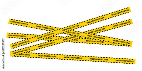 Under Construction Yellow Warning Tape Vector Sign Illustration