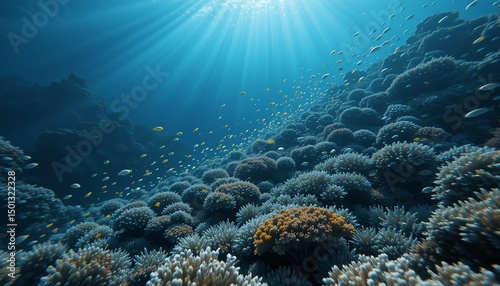 Underwater Coral Reef Scene Vibrant Fish and Sunbeams in Ocean