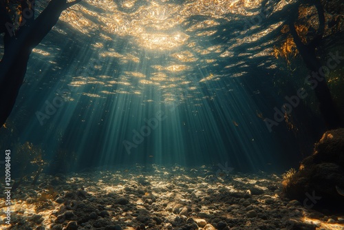 Underwater Scene Tranquil Ocean Depths Sunlight Rays Reflections