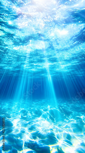 Underwater sunbeams illuminate ocean floor