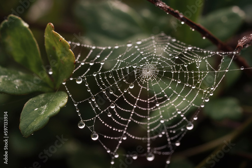 Une toile d'araignée avec des gouttelettes d'eau sur des branches » IA générative