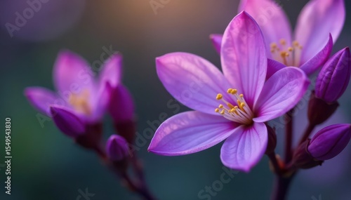 Unfurling purple flower buds, hinting at blossoms, unfolding, garden plant, macro
