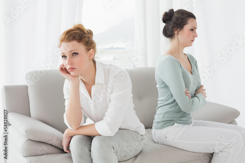 Unhappy friends not talking after argument on the couch