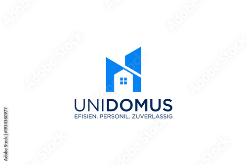 Unidomus logo with house and abstract building design.