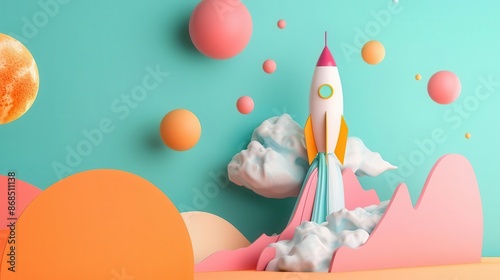 Unique composition of abstract elements and a rocket launch scene