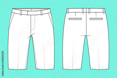 Unisex Casualwear Shorts Fashion Flat Sketch Vector Illustrator Template.