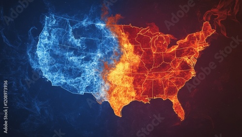 United States map with flames on one side.