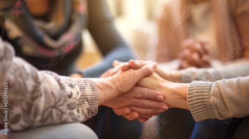 Unity and Support: Close-up of People Holding Hands in a Support Group Circle