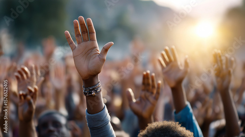 Unity in Protest: Hands Raised Together in Solidarity during Daylight