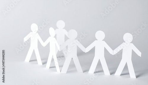 Unity Teamwork Concept Paper Chain of People Holding Hands symbolizing collaboration and community