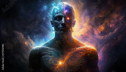 universe meta human god spirit silhouette on galaxy space background, new quality colorful spiritual stock image illustration wallpaper design, Generative AI
