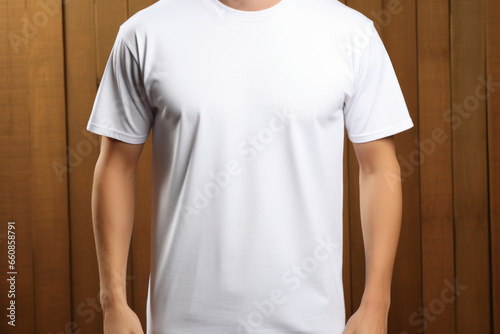 unrecognizable young man wearing a plain white t-shirt, in a studio. mock-up, advertising