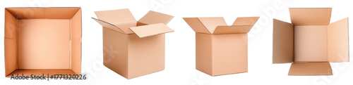 Unveiling the Empty: A set of open cardboard boxes reveals their structure and design, perfectly suited for packaging and storage needs.