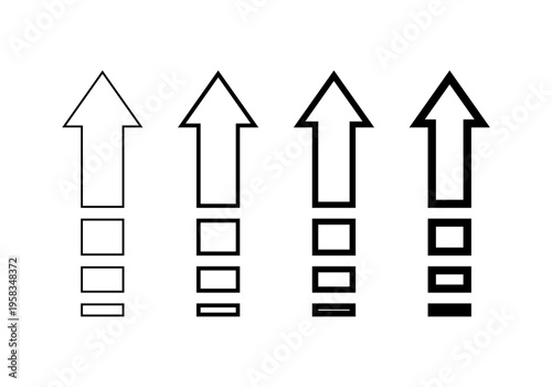 Upload or growth dashed up arrow icon set with varying stroke weights