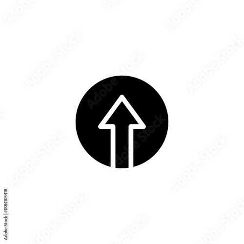 Upward Straight Arrow in Black Circle, representing Increase and Direction, isolated white background.