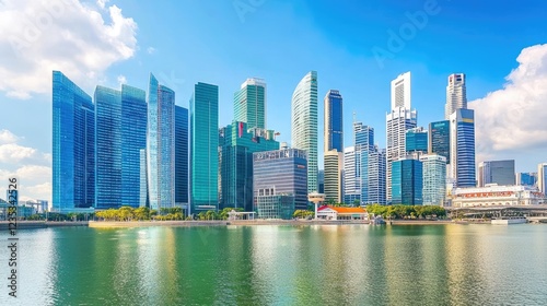 Urban business hub with skyscrapers and a dynamic cityscape, representing modern architecture.