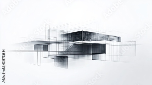 Urban Geometry - Minimalist Vector Art of Abstract Linear 3D Building Design