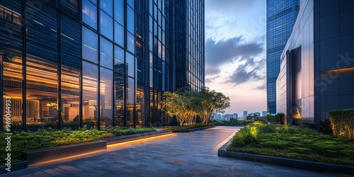 Urban Landscape with a Sleek Corporate Headquarters Building