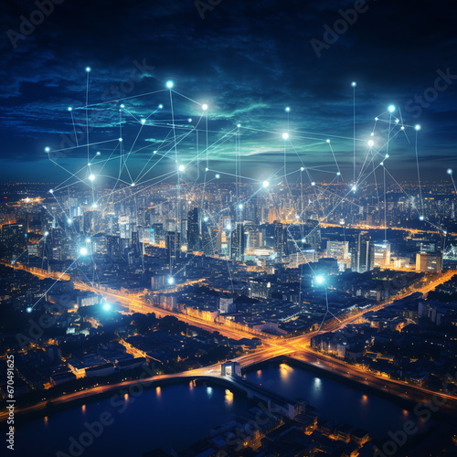 Urban Nightscape Enhanced by Cutting-Edge Wireless Connectivity
