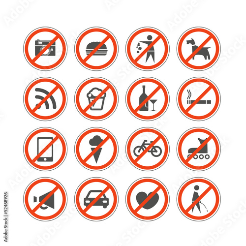 Urban prohibition signs collection isolated on white