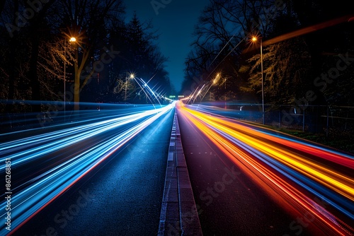 Urban street lights with car trails